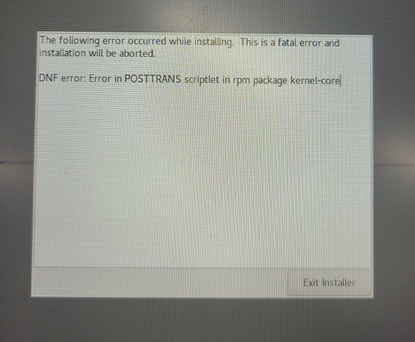 이것은 리눅스 커널의 핵심 부분을 설치하려고 시도할 때 문제가 발생했다는 것을 나타냄
